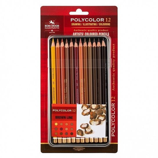 Количество в упаковке, шт: 12 Название дизайна, серии, модели, бренда: KOH-I-NOOR POLYCOLOR 3822 BRAUN LINE Упаковка: металлическая коробка Вид товара: Карандаш цветной Заточенный: Нет Форма корпуса: круглый Мин. партия и варианты упаковок: 1 / 10 Карандаши цветные художественные POLYCOLOR, 12цв, коричневые оттенки