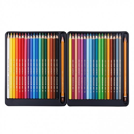 Набор из 36 цветных карандашей POLYCOLOR в картонной коробке дополнен точилкой и и двумя чернографитными карандашами серии 1500.