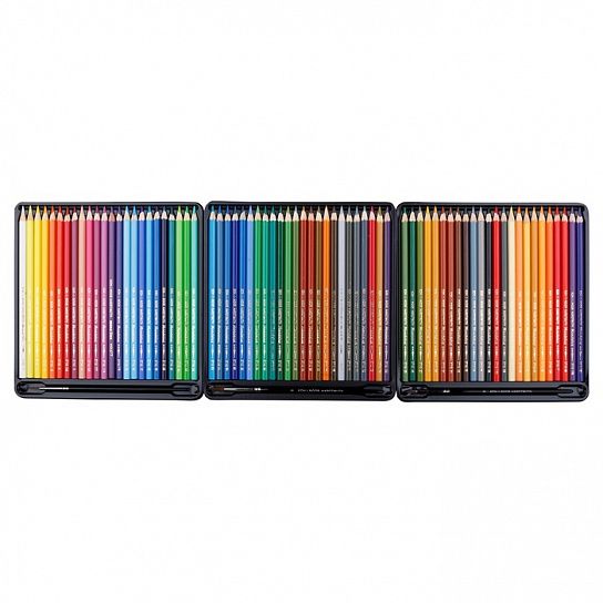 В набор входят 72 карандаша, 3 кисти из высококачественной синтетики и 2 точилки.