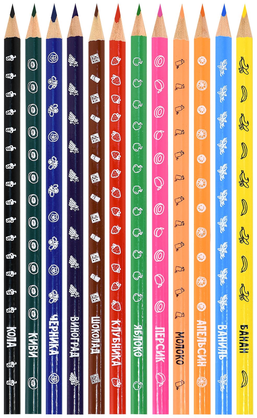 Материал: дерево Количество цветов: 12 Наличие европодвеса: Да Упаковка: картонная упаковка Мягкость грифеля: 6М Вид товара: Набор цветных карандашей Мин. партия и варианты упаковок: 1 / 12 / 240 Набор цветных карандашей Каляка-Маляка ароматизированные 12 цв. трехгранные, деревянные, принт на корпусе, супермягкий грифель, в картонной упаковке