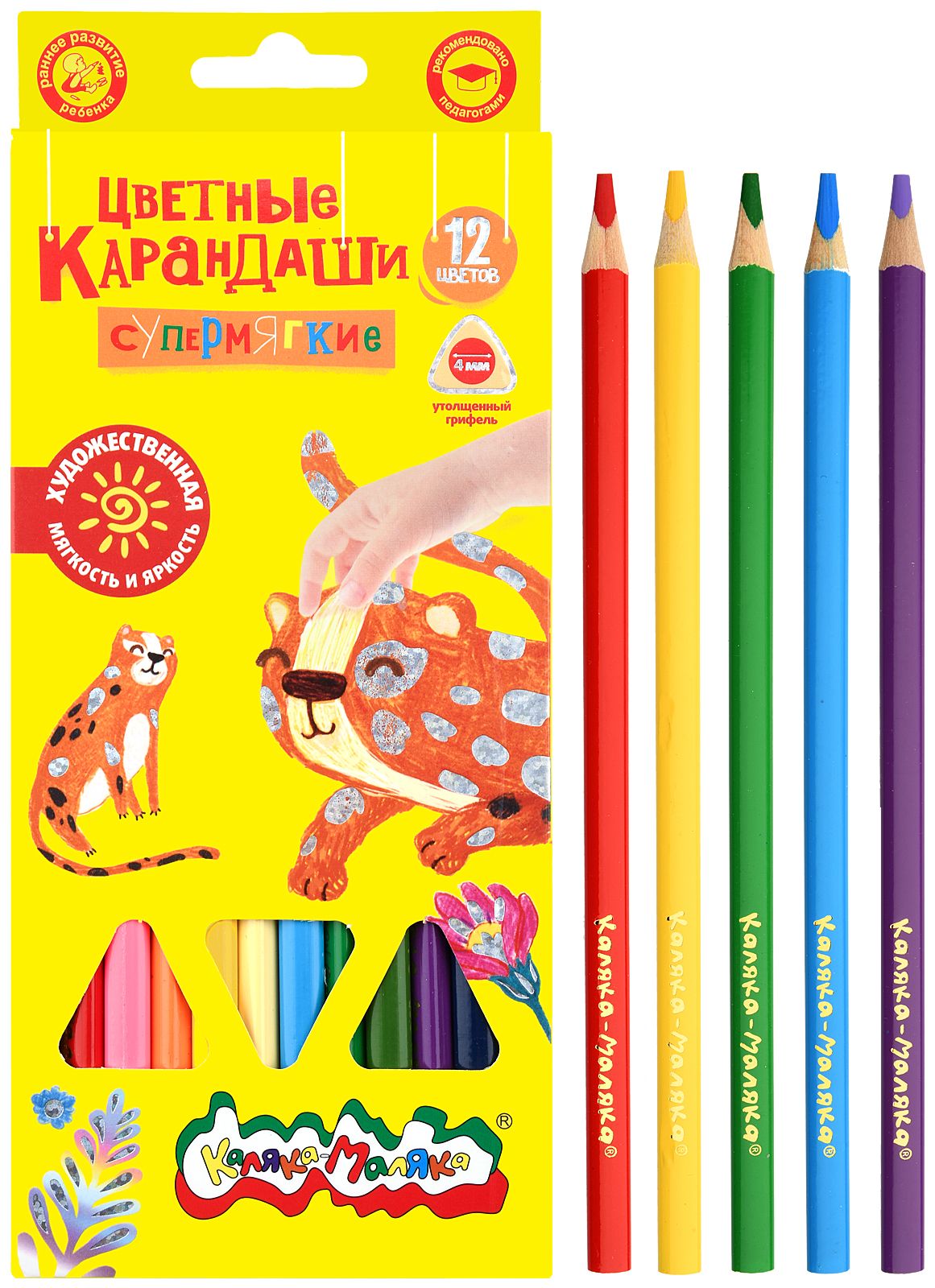 Материал: дерево Количество цветов: 12 Наличие европодвеса: Да Упаковка: картонная упаковка Мягкость грифеля: 4М Вид товара: Набор цветных карандашей Мин. партия и варианты упаковок: 1 / 12 / 240 Набор цветных карандашей Каляка-Маляка утолщенные, укороченные 12 цв. трехгранные, деревянные, в картонной упаковке