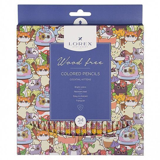 Материал: пластик Количество цветов: 24 Наличие европодвеса: Да Упаковка: картонная упаковка Мягкость грифеля: НВ Вид товара: Набор цветных карандашей Мин. партия и варианты упаковок: 1 / 12 / 96 Набор цветных карандашей LOREX COCKTAIL KITTENS 24 цв. трехгранные, пластиковые, принт на корпусе, в картонной упаковке