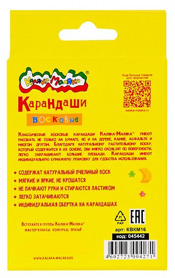Восковые карандаши Каляка-Маляка® разработаны специально для маленьких художников, только начинающих создавать свои первые шедевры.