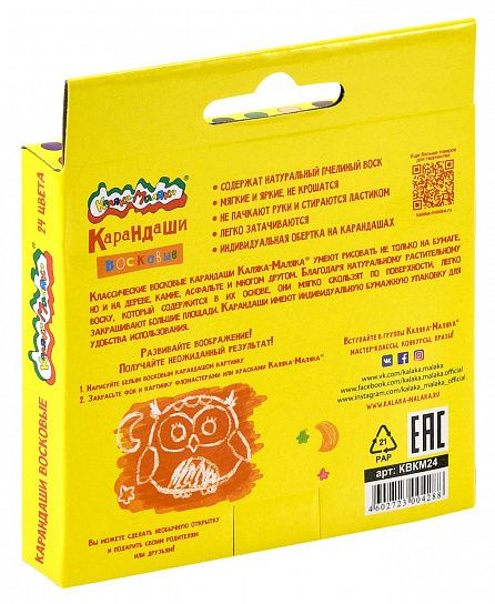 Восковые карандаши Каляка-Маляка® разработаны специально для маленьких художников, только начинающих создавать свои первые шедевры.