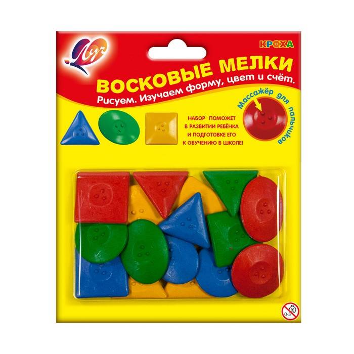 Выпускаются в форме основных геометрических фигур (треугольника, квадрата, круга, овала). Внутри каждого мелка имеются маленькие массажеры для детских пальчиков, способствующие развитию мелкой моторики. Рисуют по бумаге, картону, дереву, камням и другим поверхностям. Легко скользят по поверхности, оставляя яркие линии и штрихи.
