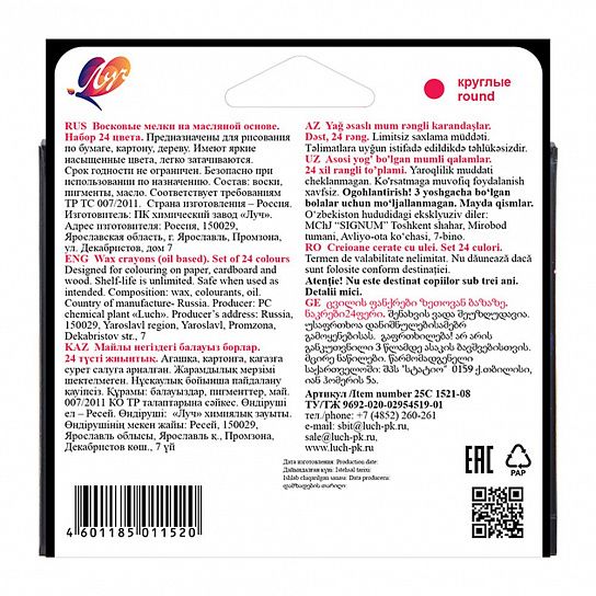 Мелки восковые на масляной основе Фантазия изготовлены на основе природных восков с добавлением масла, вследствие чего рисуют мягко, хорошо укрывая поверхность.
