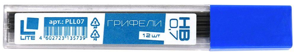 Цвет: серый Количество в упаковке, шт: 12 Мягкость грифеля: НВ Упаковка: пластиковый футляр Диаметр грифеля: 0,70 Торговая марка: LITE Мин. партия и варианты упаковок: 1 / 24 / 288 / 5760 Грифель для механических карандашей LITE 0,7 мм, 60 мм, НВ, 12 штук