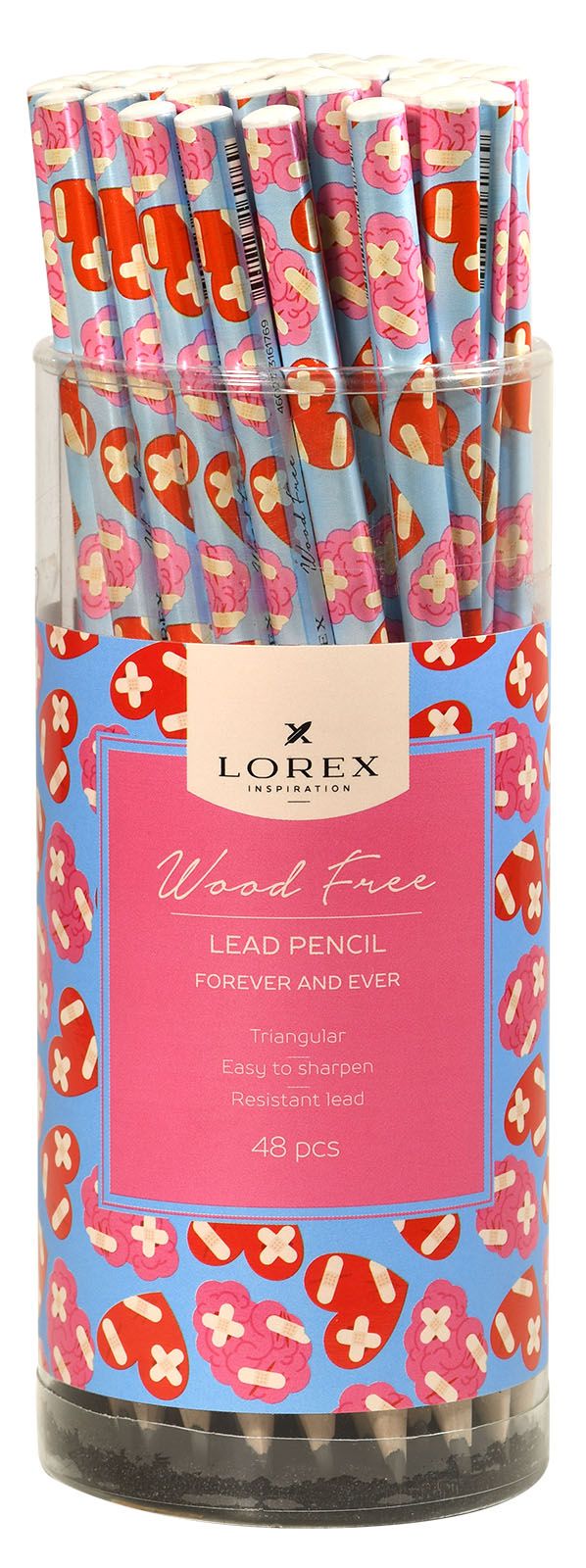 Наличие европодвеса: Нет Мягкость грифеля: НВ Цвет корпуса: розовый Наличие индивидуального штрих-кода: Да Заточенный: Да Форма корпуса: трехгранный Мин. партия и варианты упаковок: 1 / 48 / 576 / 2304 Карандаш чернографитный пластиковый LOREX FOREVER AND EVER НВ заточенный, трехгранный, принт на корпусе, тубус