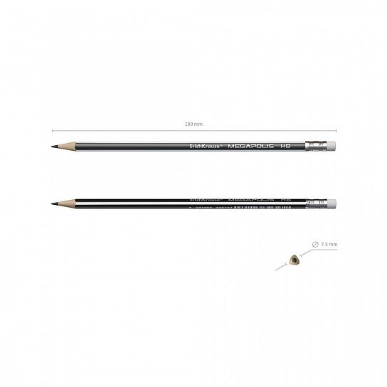 Эргономичный трехгранный карандаш с ластиком из отборной древесины, твердость НВ. Специальная пропитка древесины и сплошная проклейка грифеля обеспечивает высокую ударопрочность. Мягкая древесина и идеальная центровка грифеля гарантируют легкую заточку с экономным расходом карандаша. Грифель диаметром 2.2 мм не царапает бумагу и не крошится. Ластик карандаша средней жесткости изготовлен из экологически чистого и гипоаллергенного материала термопластичной резины (TPR). Не содержит ПВХ. Длина 188 мм.