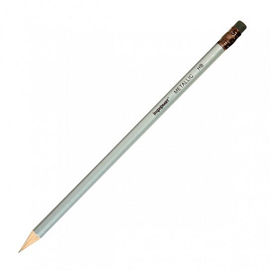 Карандаш чернографитный круглый заточенный с ластиком черного цвета. Корпус цвета металлик. Цвета корпуса: серебряный, золотой, розовый. Помимо стандартной упаковки предлагаются карандаши в удобной пластиковой тубе с цветной этикеткой. В каждой тубе размещено по 48 карандашей.