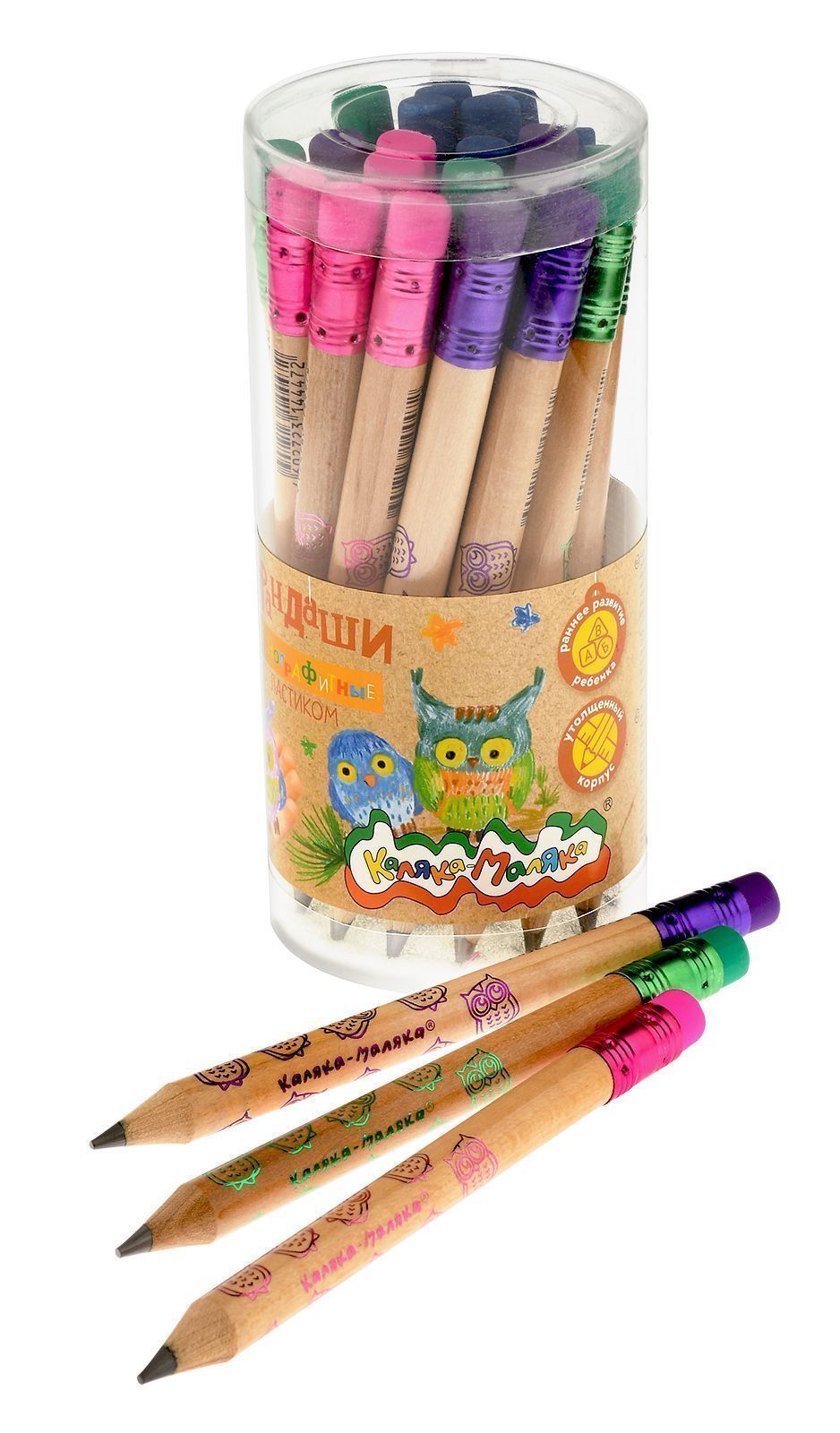 Чернографитные карандаши, созданные специально для малышей имеют специально разработанный размер — 2/3 стандартного и утолщенный диаметр, чтобы его можно было удобно держать в ручке. Круглый корпус без краски и лака обеспечит безопасность маленьким художникам. А веселые разноцветные совы и огромные разноцветные ластики развеселят юных творцов.