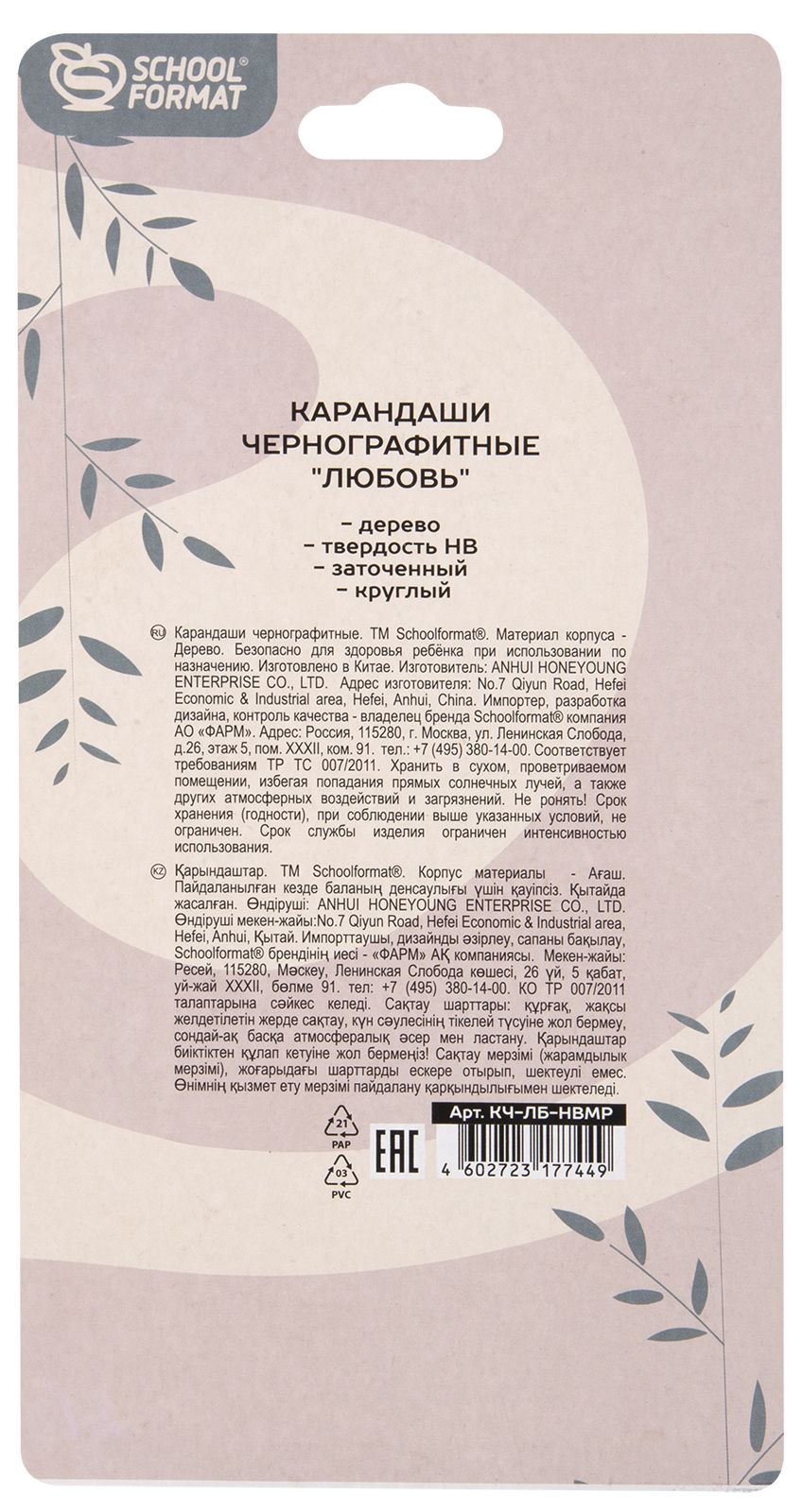 Количество в упаковке, шт: 3 Наличие европодвеса: Да Цвет корпуса: черный Заточенный: Да Форма корпуса: круглый Упаковка: блистер Мин. партия и варианты упаковок: 1 / 12 / 240 Набор чернографитных карандашей деревянные Schoolformat ЛЮБОВЬ. РОЗОВЫЙ 3 шт HB заточенные, круглые, с подвеской, блистер с европодвесом