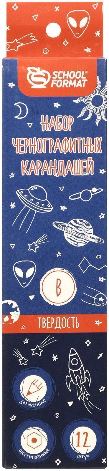 Набор чернографитных карандашей деревянные Schoolformat 12 шт B заточенные, шестигранные, цветная коробка с европодвесом