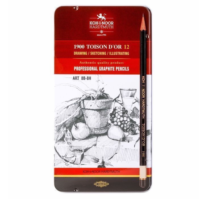 Профессиональные высококачественные чернографитные карандаши серии 1900 для рисования и чертежных работ в металлической коробке. В наборе 12 штук по одному карандашу с твердостью 8В, 6В, 4В, 3В, 2В, В, НВ, F, 2Н, 4Н, 6Н, 8Н.