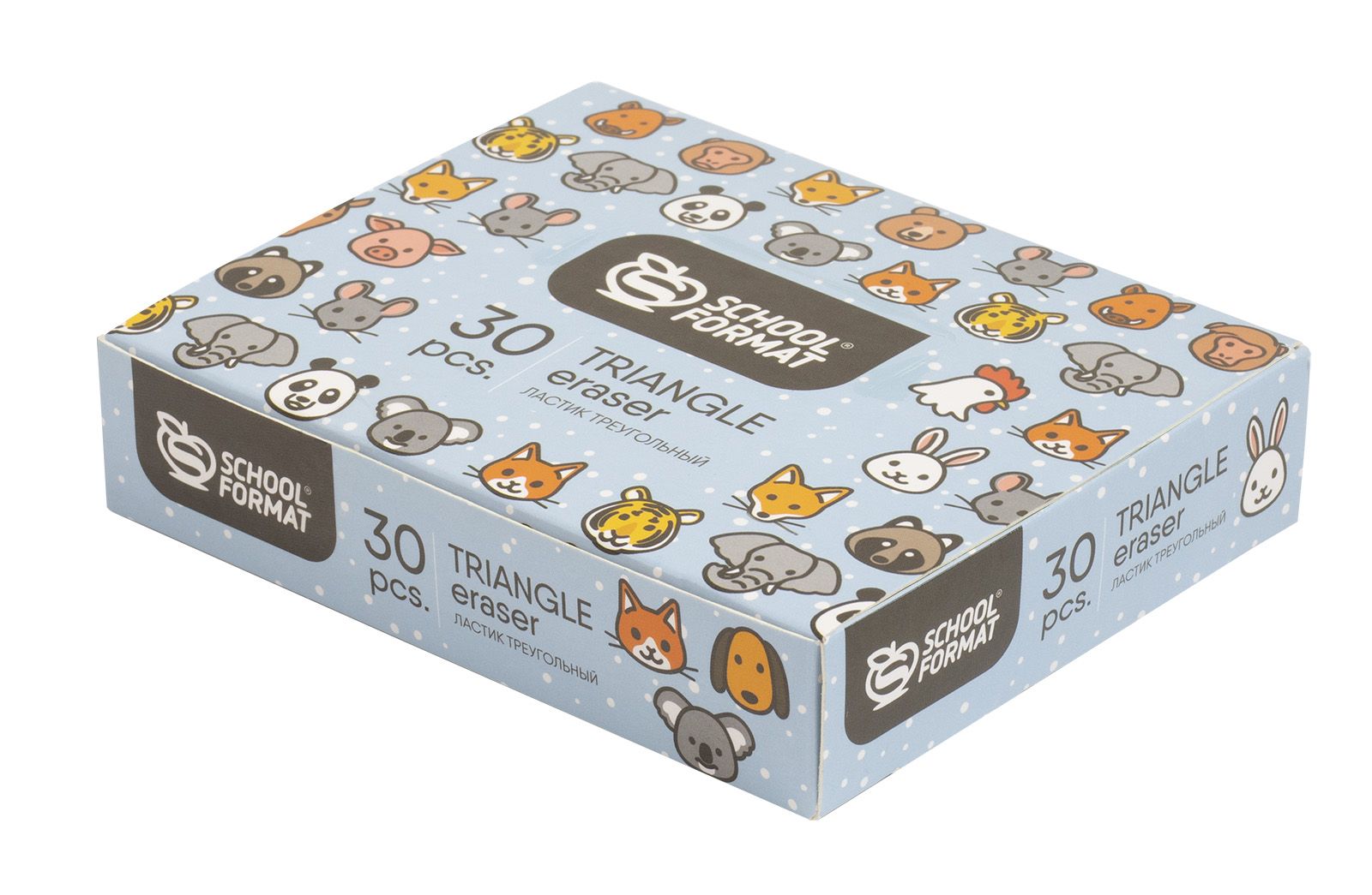 Цвет: ассорти Размер: 33х33х13 мм Наличие европодвеса: Нет Упаковка: дисплей Вид чертежных принадлежностей: Ластик Материал: резина Мин. партия и варианты упаковок: 1 / 30 / 1200 Ластик Schoolformat ANIMALS 33х33х13 мм, ассорти, треугольный, в дисплее