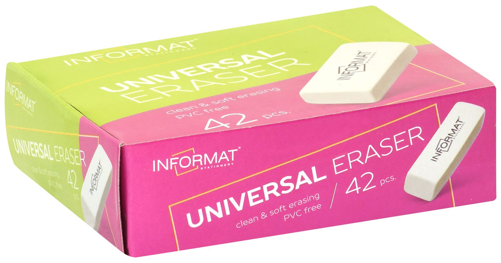 Цвет: белый Размер: 45х15х10 мм Наличие европодвеса: Нет Упаковка: картонная упаковка Вид чертежных принадлежностей: Ластик Материал: каучук Мин. партия и варианты упаковок: 1 / 42 / 1680 Ластик INFORMAT УНИВЕРСАЛЬНЫЙ каучук 45х15х10 мм скошенный, белый, мягкий