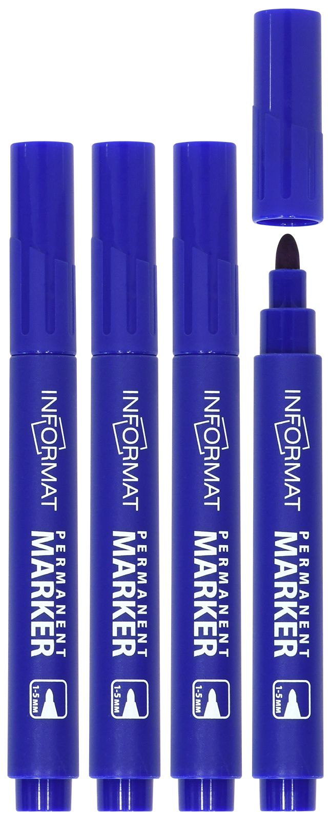 Цвет: синий Количество в упаковке, шт: 1 Тип чернил: водостойкие Форма наконечника: круглый Вид маркера: Маркер перманентный Количество пишущих сторон: односторонний Мин. партия и варианты упаковок: 1 / 12 / 144 / 864 Маркер перманентный INFORMAT PERMANENT 1-5 мм синий, круглый наконечник