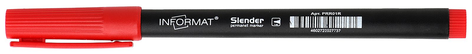 Цвет: красный Количество в упаковке, шт: 1 Тип чернил: водостойкие Форма наконечника: круглый Вид маркера: Маркер перманентный Количество пишущих сторон: односторонний Мин. партия и варианты упаковок: 1 / 12 / 144 / 1728 Маркер перманентный INFORMAT SLENDER 1 мм красный, круглый наконечник