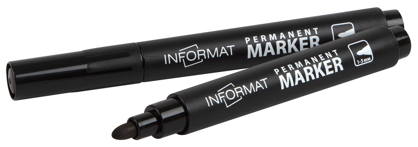 Цвет: черный Количество в упаковке, шт: 1 Тип чернил: водостойкие Форма наконечника: круглый Вид маркера: Маркер перманентный Количество пишущих сторон: односторонний Мин. партия и варианты упаковок: 1 / 12 / 144 / 864 Маркер перманентный INFORMAT PERMANENT 1-5 мм черный, круглый наконечник