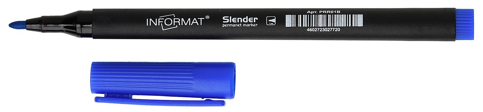Цвет: синий Количество в упаковке, шт: 1 Тип чернил: водостойкие Форма наконечника: круглый Вид маркера: Маркер перманентный Количество пишущих сторон: односторонний Мин. партия и варианты упаковок: 1 / 12 / 144 / 1728 Маркер перманентный INFORMAT SLENDER 1 мм синий, круглый наконечник