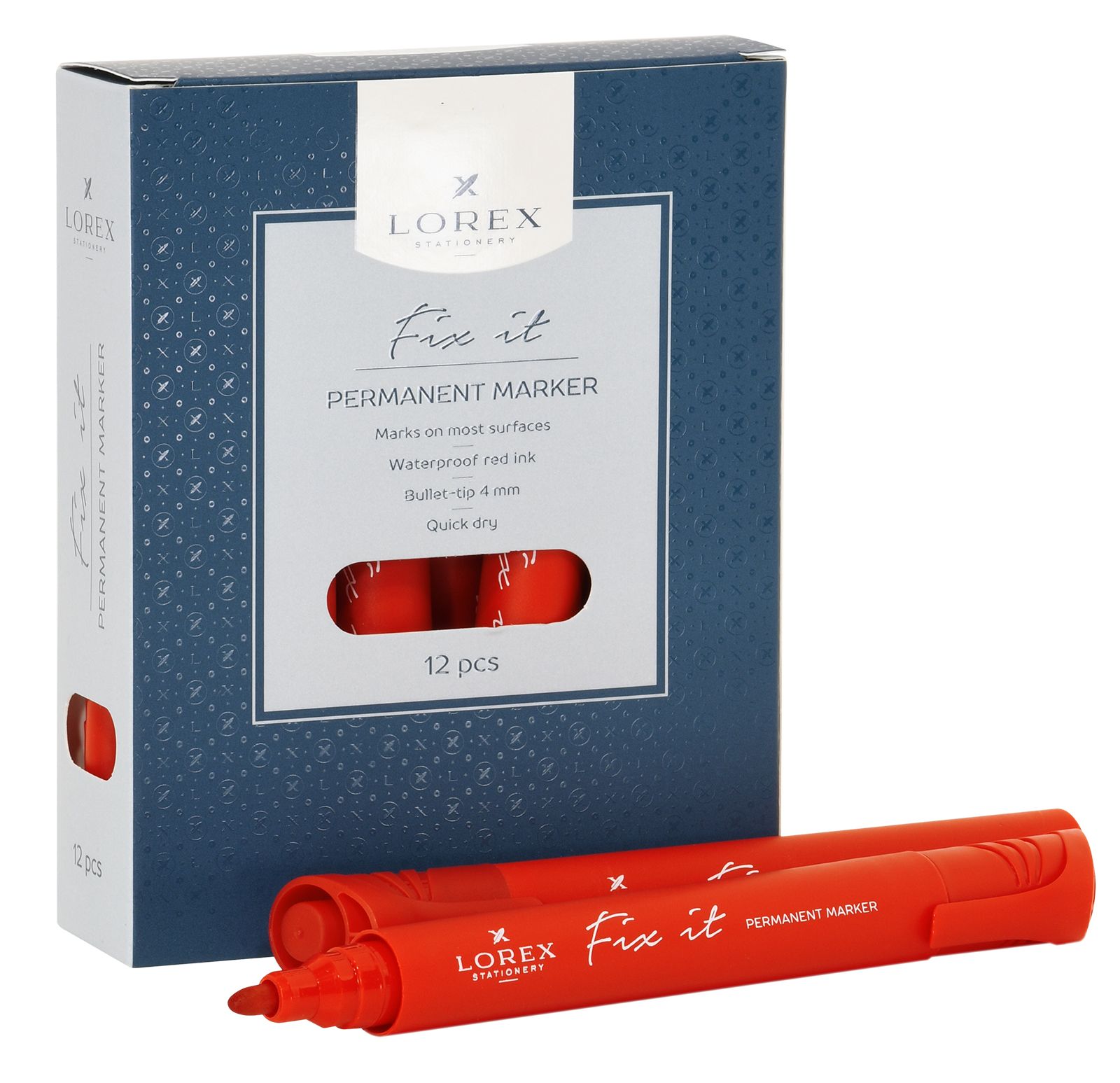 Маркер перманентный FIX IT — это выбор профессионалов. Водостойкие быстросохнущие чернила. Спиртовая основа. Прекрасно пишет на любых поверхностях: бумаге, картоне, дереве, металле, пластмассе, стекле, керамике.Классическая форма корпуса. Пишущий узел с круглым наконечником, устойчив к деформации. Диаметр пишущего узла — 4 мм.