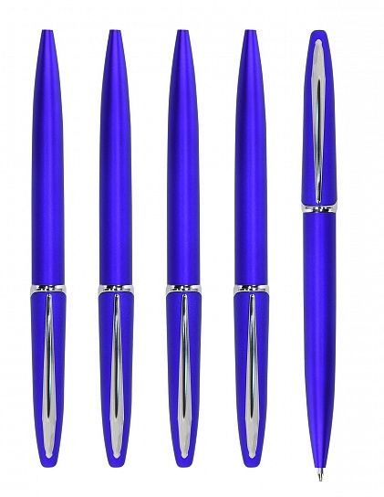 Автоматическая шариковая ручка. Имеет презентабельный вид. Синий корпус. Обеспечивают комфортное письмо на бумаге любой плотности. Цвет чернил — синий. Пишущий узел — 0,7 мм. Длина стержня — 105 мм, с упором.