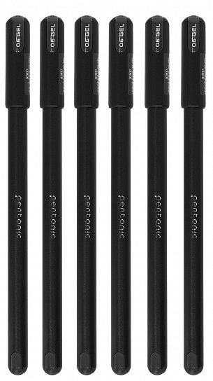 Гелевые ручки PENTONIC с черными чернилами в наборе 6 штук. Толщина пишущего узла — 0,6 мм.