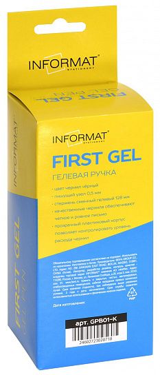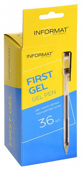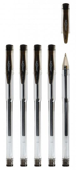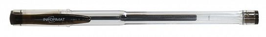 Ручка гелевая INFORMAT - узнаваемый дизайн по доступной цене. Гелевая ручка INFORMAT обеспечивает легкое и мягкое письмо, яркие и насыщенные линии. Чернила водостойкие, быстро высыхают и не размазываются. Прозрачный корпус позволяет контролировать уровень чернил. Цвет чернил — черный, пишущий узел — 0,5 мм, форма наконечника — классический конус. Длина стержня — 127 мм.