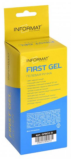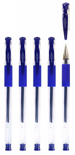 Ручка гелевая INFORMAT - узнаваемый дизайн по доступной цене. Гелевая ручка INFORMAT обеспечивает легкое и мягкое письмо, яркие и насыщенные линии. Чернила водостойкие, быстро высыхают и не размазываются. Мягкий резиновый грип делает письмо еще комфортнее. Прозрачный корпус позволяет контролировать уровень чернил. Цвет чернил — синий, пишущий узел — 0,5 мм, форма наконечника — классический конус. Длина стержня — 127 мм.