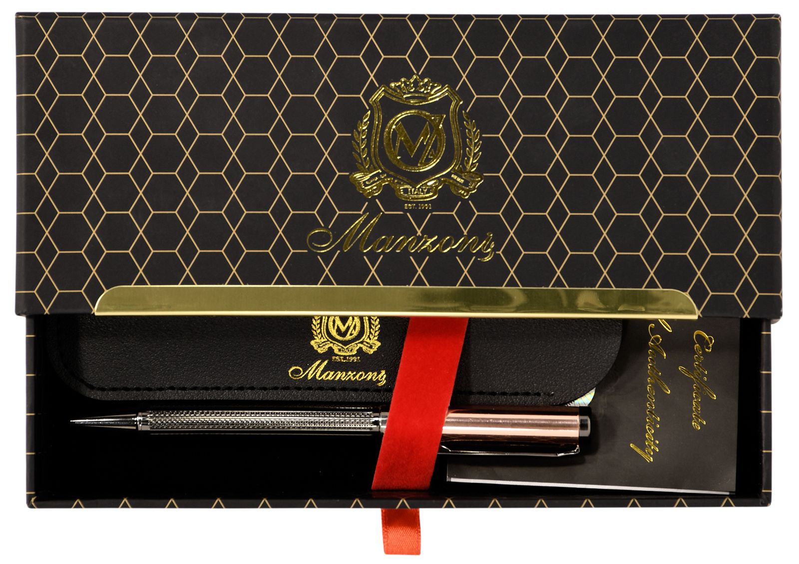 Цвет чернил: синий Механизм автоматической ручки: поворотный Толщина линии письма, мм: 0,50 Цвет корпуса: розовое золото Длина стержня, мм: 98 Пишущий узел, мм: 1,00 Мин. партия и варианты упаковок: 1 / 25 / 50 Ручка шариковая Manzoni Panteon синяя 1 мм, розовое золото
