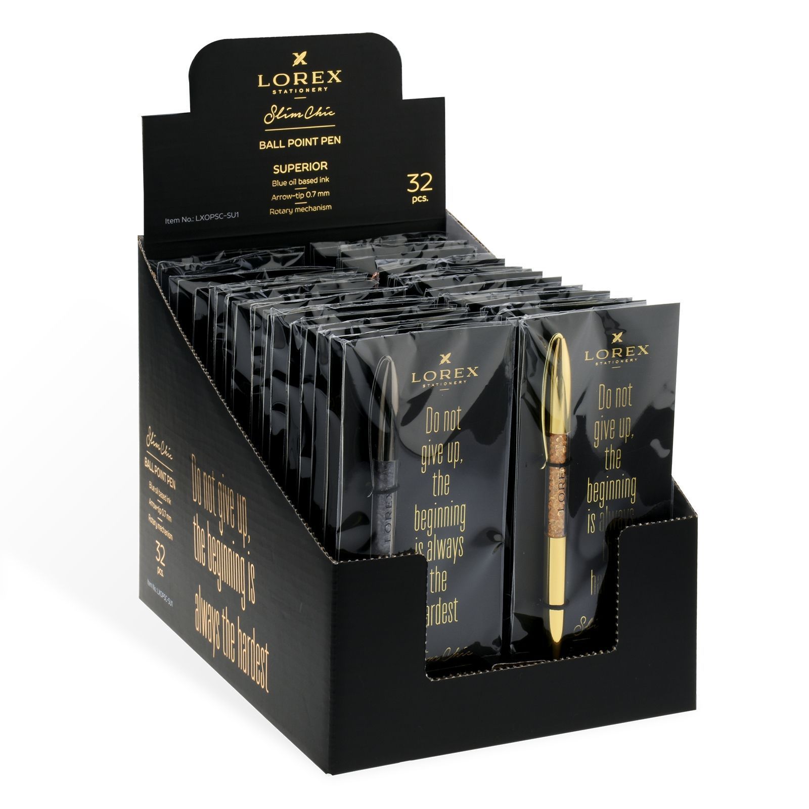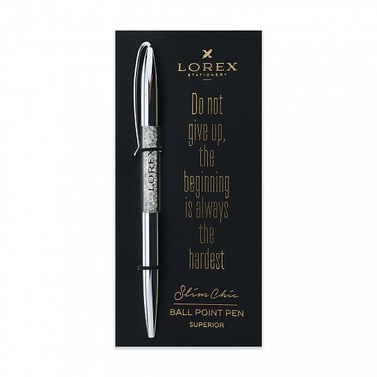 Шариковые ручки LOREX серии Slim Chic - это новое слово в индустрии подарков. Ручки с элегантным корпусом в удобной индивидуальной упаковке, аккуратно уложены в цветную коробку, которая «легким движением руки» превращается в дисплей бокс. SUPERIOR это большой выбор цветов корпуса, однотонный металлик для любителей классики.