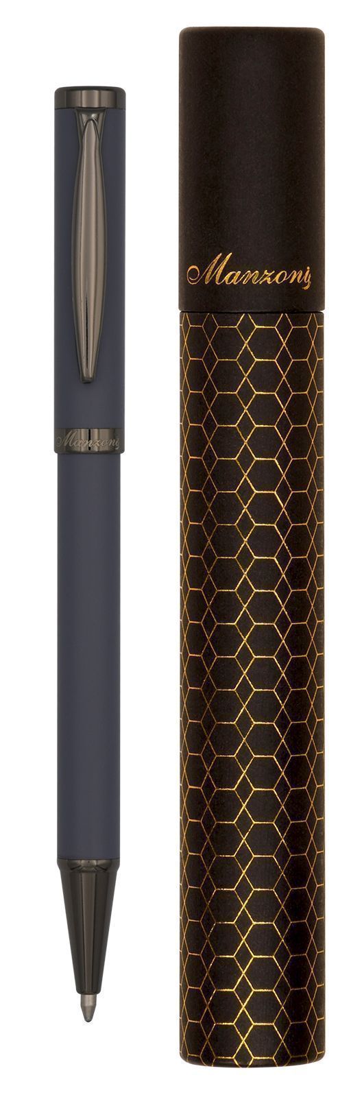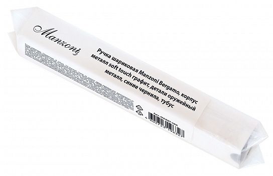 Элегантная ручка Manzoni Bergamo изготовлена из качественных материалов и обладает металлическим корпусом. Матовый графитовый цвет корпуса, украшенный деталями цвета оружейного металла, придает ручке изысканный стиль и неповторимый шарм.