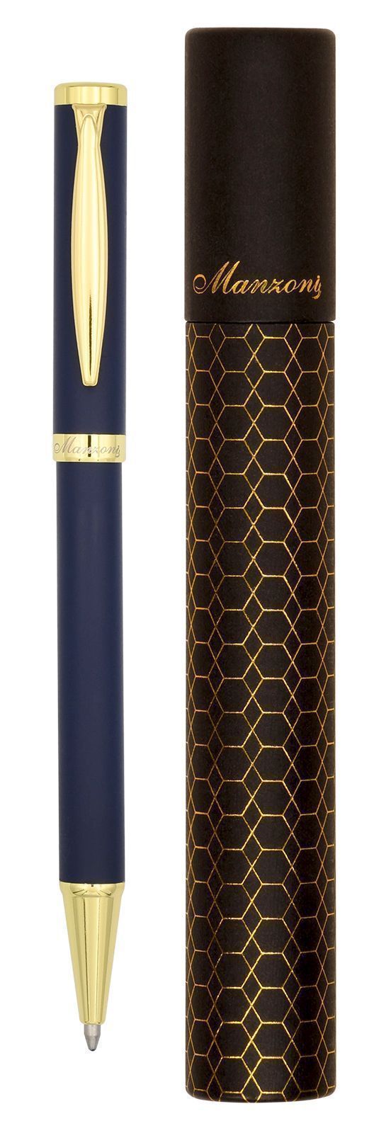 Элегантная ручка Manzoni Bergamo изготовлена из качественных материалов и обладает металлическим корпусом. Матовый темно-синий цвет корпуса, украшенный деталями золотого цвета, придает ручке изысканный стиль и неповторимый шарм.