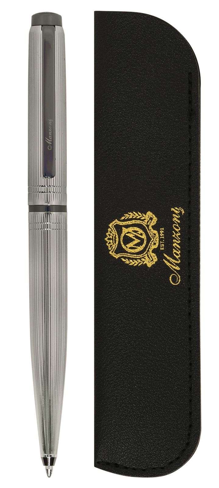 Элегантная ручка Manzoni Monza изготовлена из качественных материалов и обладает металлическим корпусом. Премиальный серебряный цвет корпуса, украшенный деталями цвета оружейного металла, придает ручке изысканный стиль и неповторимый шарм.