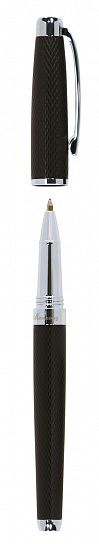 Особенность этой ручки - закручивающийся колпачок, который придает новые ощущения от использования. Прекрасное сочетание премиального темно-коричневого цвета корпуса и серебряных деталей придает ручке изысканный стиль и неповторимый шарм. Ручка оснащена пишущим узлом 0,7 мм, который обеспечивает четкое и ровное письмо. Длина стержня составляет 110 мм, что делает ее удобной в использовании.