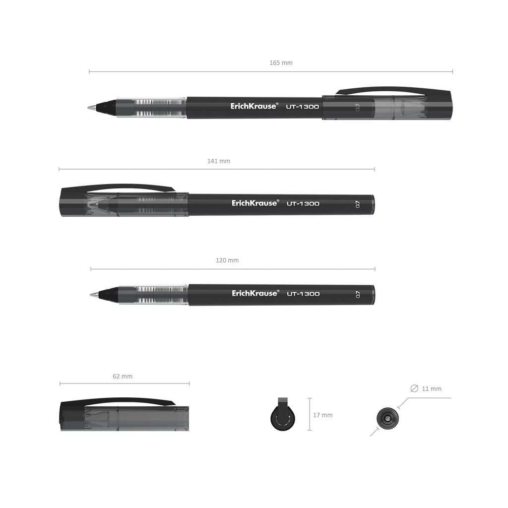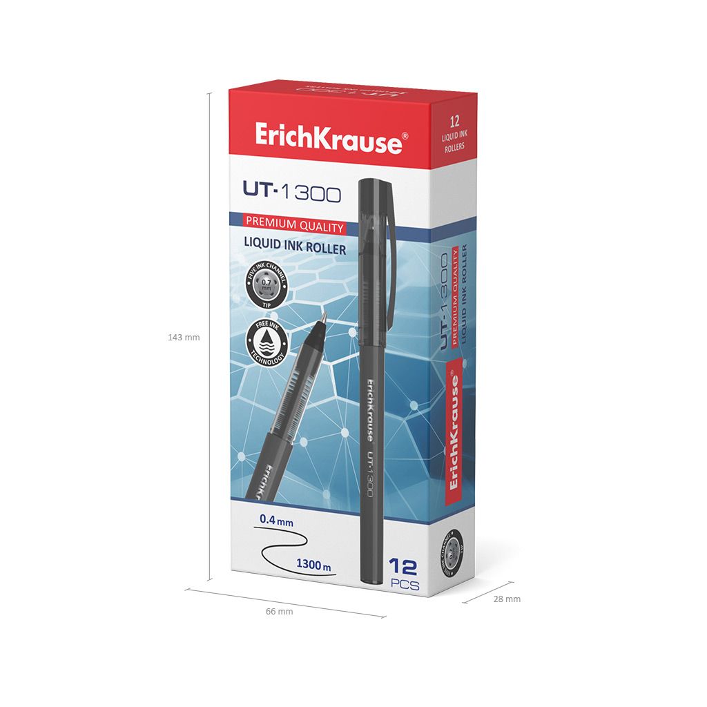 Цвет чернил: черный Толщина линии письма, мм: 0,40 Цвет корпуса: ассорти Наличие резинового грипа: Нет Упаковка: картонная коробка Профиль корпуса: круглый корпус Мин. партия и варианты упаковок: 1 / 144 / 864 Ручка-роллер ErichKrause UT-1300 черный 0,7 мм ассорти круглый корпус