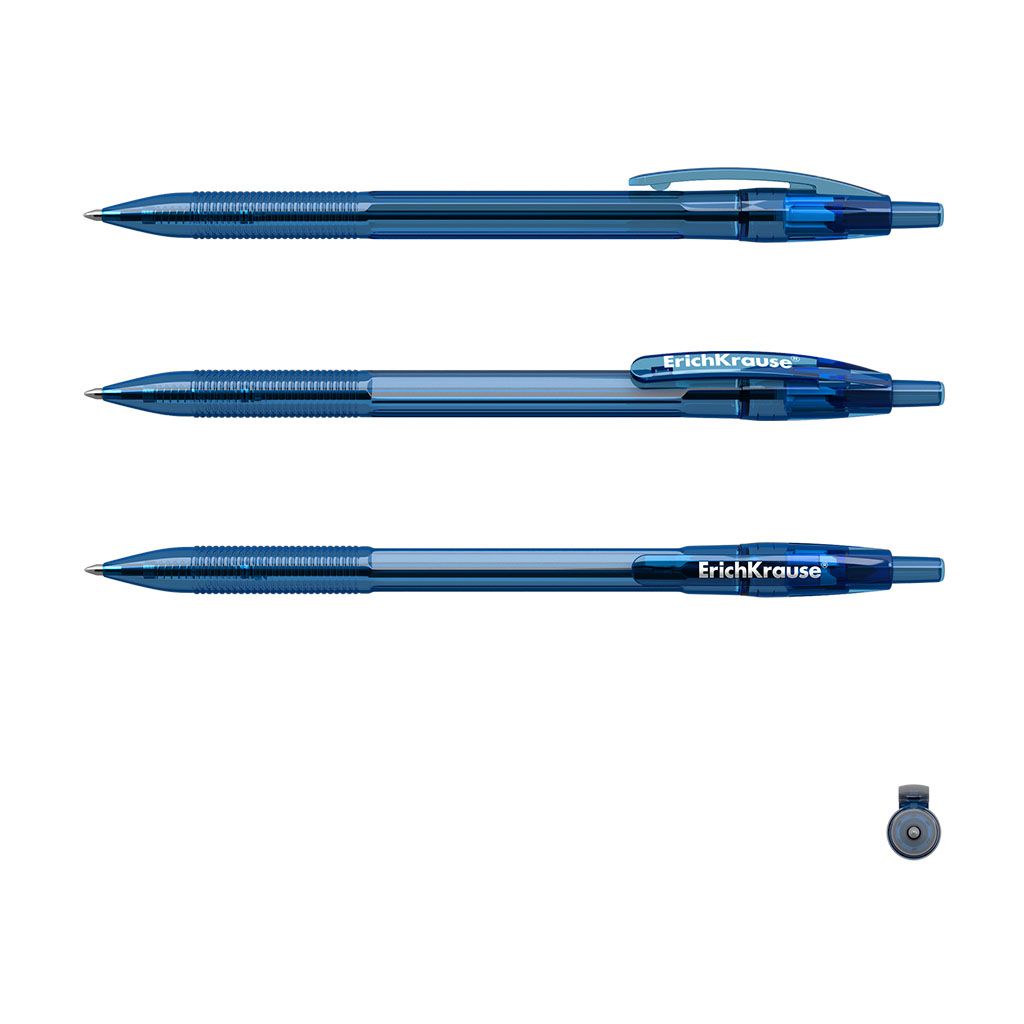 Цвет чернил: синий Количество цветов: 1 Механизм автоматической ручки: кнопочный Цвет корпуса: прозрачный Наличие резинового грипа: Да Профиль корпуса: круглый корпус Мин. партия и варианты упаковок: 1 / 12 / 144 / 864 -