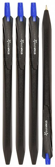 Стильный дизайн корпуса из черного матового пластика. Трехгранная форма захвата для пальцев при письме. Объема чернил хватит на 1150 метров письма, что в разы больше, чем длина письма других одноразовых ручек!