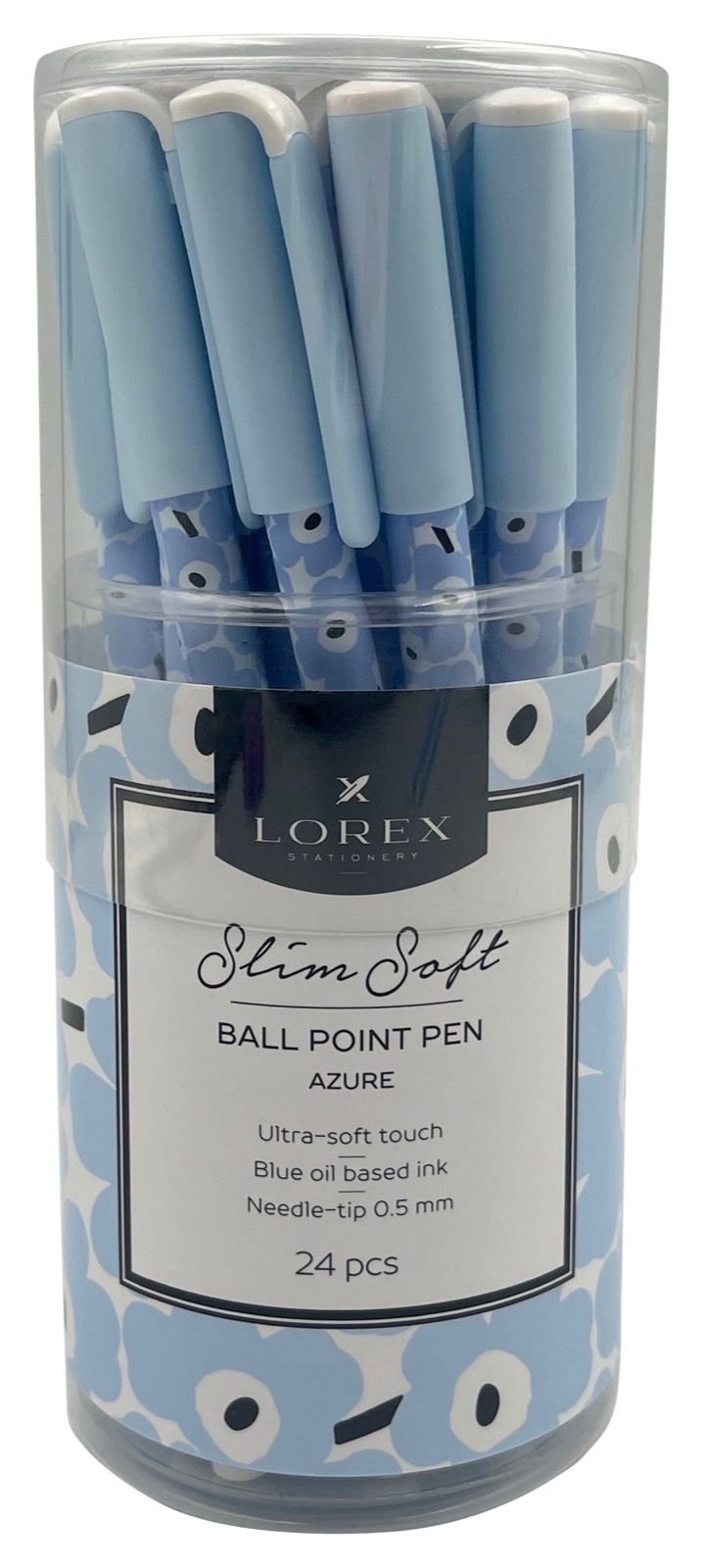 Цвет чернил: синий Толщина линии письма, мм: 0,25 Цвет корпуса: ассорти Наличие резинового грипа: Нет Упаковка: тубус Профиль корпуса: круглый корпус Мин. партия и варианты упаковок: 1 / 24 / 288 / 1728 Ручка шариковая на масляной основе LOREX AZURE Slim Soft синяя 0,5 мм, ассорти круглый корпус, ultra-soft touch, игольчатый наконечник