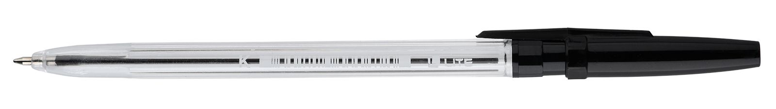 Цвет чернил: черный Толщина линии письма, мм: 0,32 Цвет корпуса: прозрачный Наличие резинового грипа: Нет Упаковка: картонная коробка Профиль корпуса: круглый корпус Мин. партия и варианты упаковок: 1 / 50 / 800 -