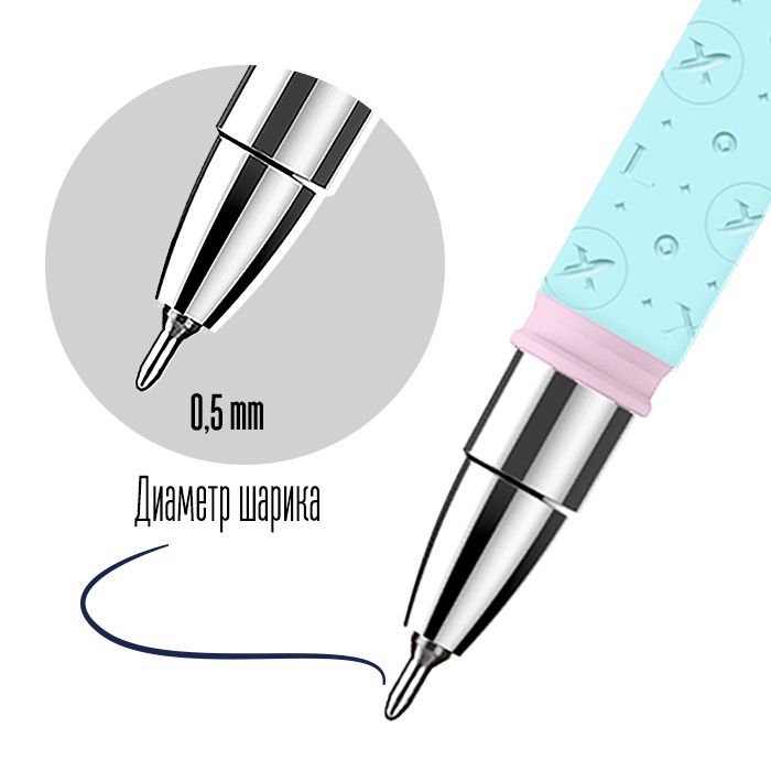 Цвет чернил: синий Толщина линии письма, мм: 0,35 Цвет корпуса: дизайн Наличие резинового грипа: Нет Упаковка: блистер с европодвесом Профиль корпуса: круглый корпус Мин. партия и варианты упаковок: 1 / 24 / 144 -