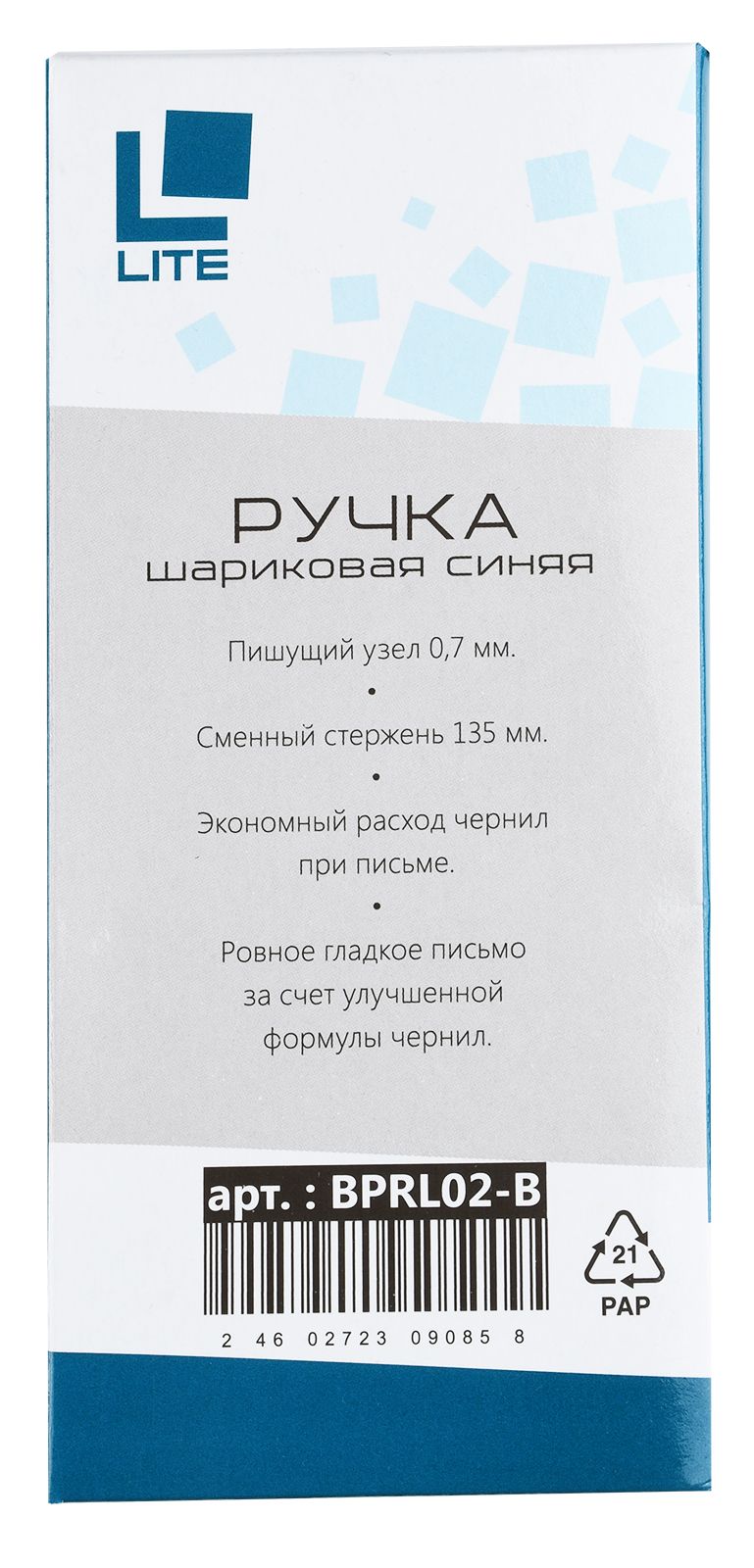 Цвет чернил: синий Толщина линии письма, мм: 0,35 Цвет корпуса: прозрачный Наличие резинового грипа: Нет Упаковка: картонная коробка Профиль корпуса: шестигранный корпус Мин. партия и варианты упаковок: 1 / 50 / 1000 / 2000 Ручка шариковая LITE 51 синяя 0,7 мм, прозрачный шестигранный корпус