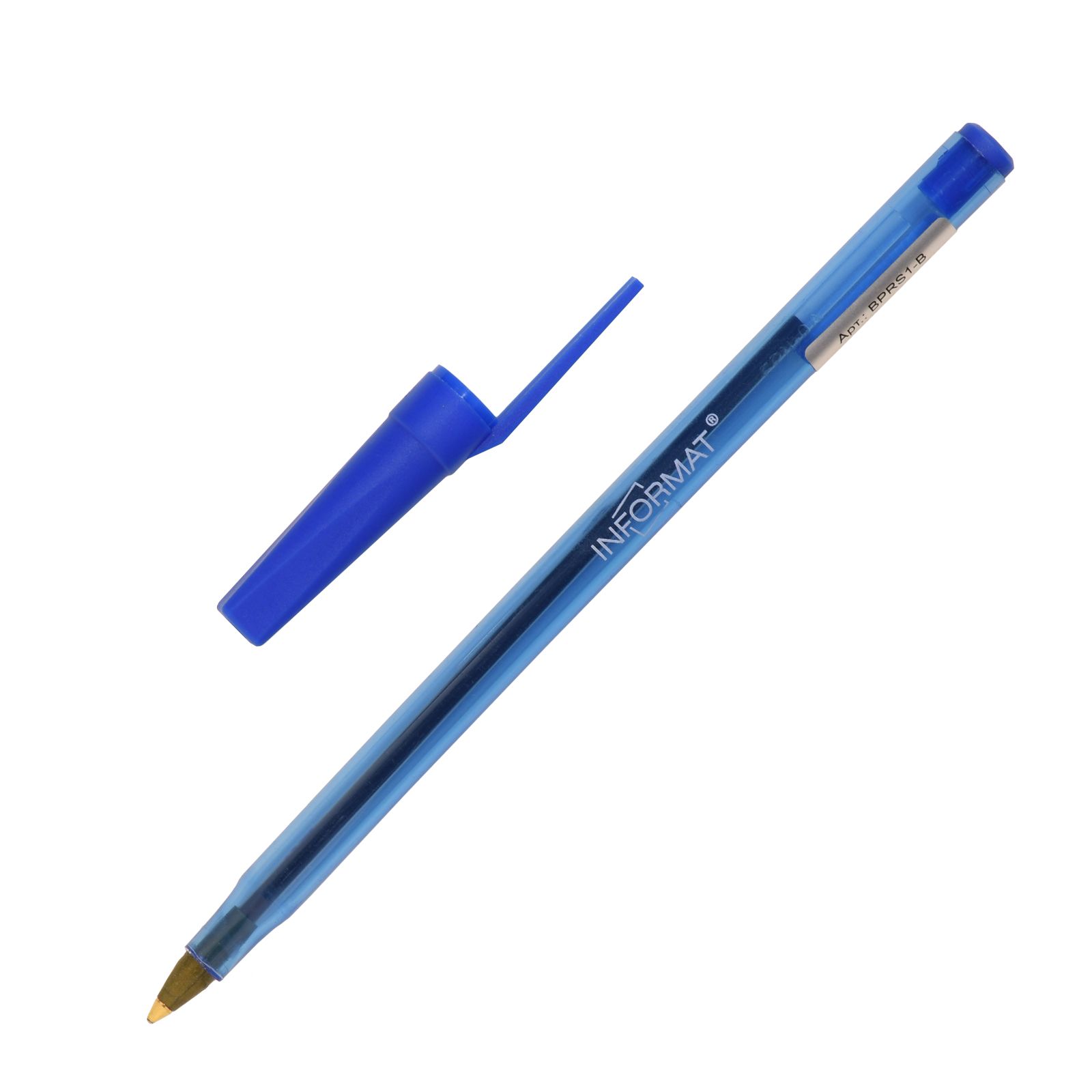 Цвет чернил: синий Толщина линии письма, мм: 0,50 Цвет корпуса: прозрачно-синий Наличие резинового грипа: Нет Упаковка: картонная коробка Профиль корпуса: круглый корпус Мин. партия и варианты упаковок: 1 / 50 / 1000 / 2000 Ручка шариковая INFORMAT RS синяя 1 мм, прозрачно-синий круглый корпус