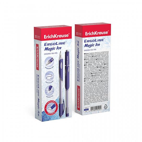 Гелевая ручка Stick&Grip со стираемыми чернилами, стандартным типом пишущего узла и заменяемым стержнем. Ручка имеет тонированный круглый корпус с блестками и треугольную эргономичную грип-зону с выемками для пальцев, с ластиком на колпачке.