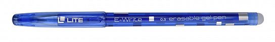 Ручка E-Write обладает уникальным сочетанием ярких обесцвечивающихся термочернил, стильного дизайна и высочайшего качества исполнения. Ручка пишет специальными гелевыми чернилами синего цвета. Для удаления надписи её необходимо потереть специальным ластиком, встроенным в корпус ручки. При письме и стирании ручка не повреждает бумагу, делая исправления незаметными. Корпус выполнен в тонированном синем цвете с серебряными элементами.