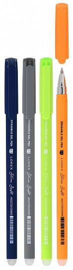 Ручки LOREX со стираемыми чернилами серии Slim Soft — это тонкий элегантный корпус изготовленный по технологии Ultra-soft touch. Чернила обесцвечиваются при нагревании. Достаточно потереть надпись специальным резиновым ластиком, расположенным на конце корпуса ручки, и надпись исчезнет. При корректировке надписи бумага остается невредимой, можно писать поверх стертого. Самые яркие и стильные дизайны на корпусе.Диаметр пишущего узла 0,5 мм. Чернила гелевые, синие.