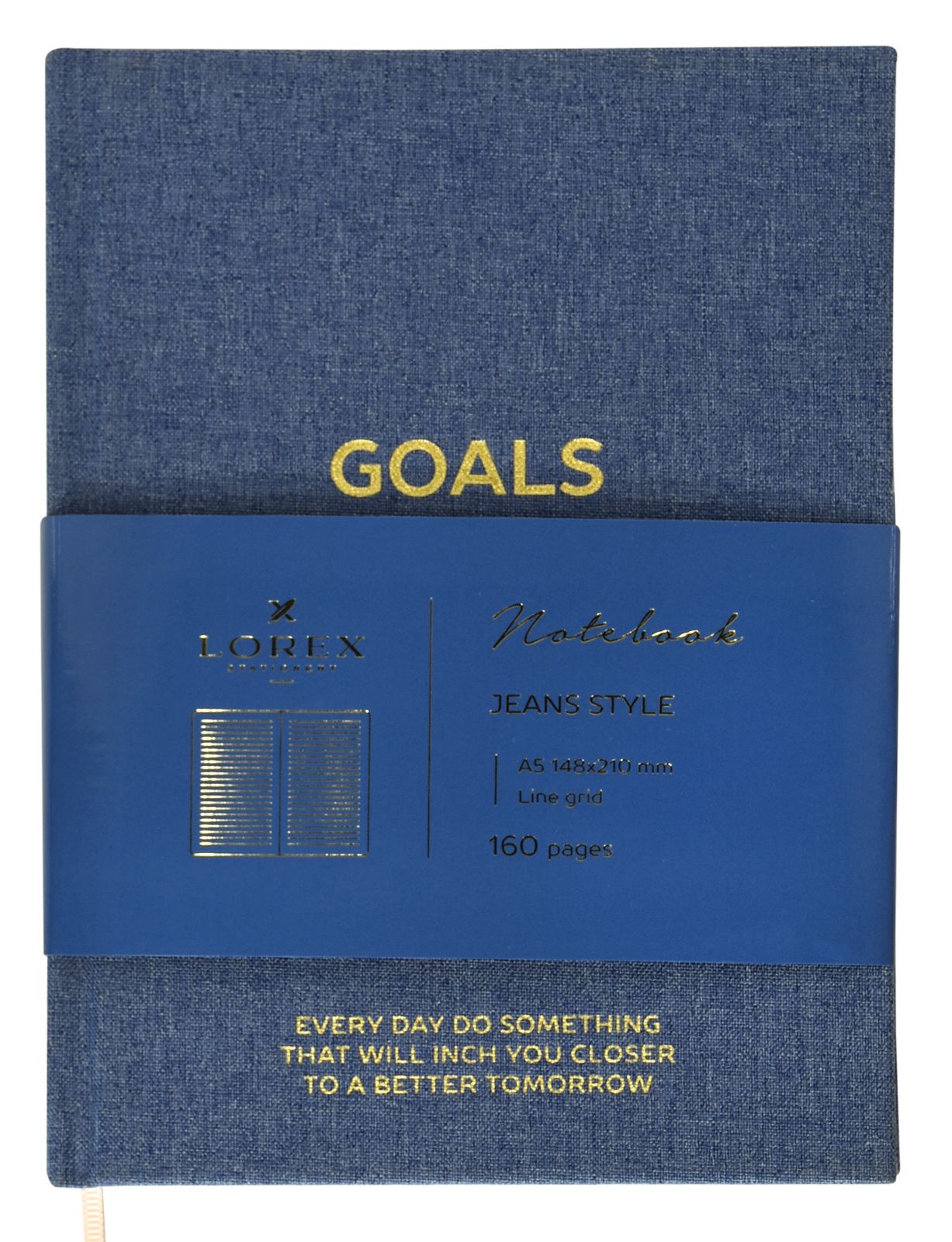 Блокнот А5 80 л. клетка LOREX JEANS STYLE ткань, тиснение, с ляссе