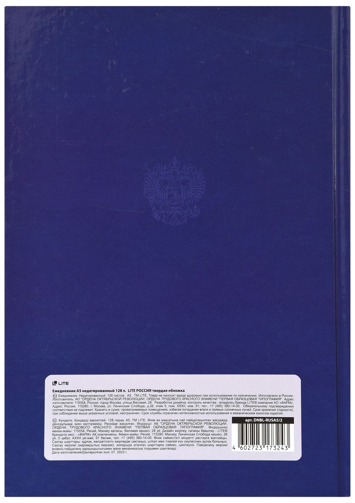 Формат: А5 Количество листов: 128 Материал обложки: 7БЦ Линовка: линия Вид изделия: Ежедневник Степень датированности: недатированный Мин. партия и варианты упаковок: 1 / 20 Ежедневник А5 недатированный LITE РОССИЯ 128 л. с дизайном, твердая обложка 7БЦ, глянцевая ламинация