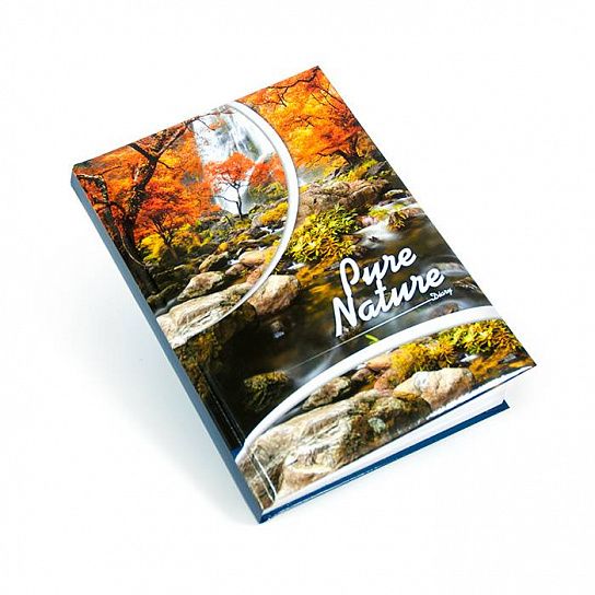 Формат А5, кол-во листов - 136, вид крепления - твердый переплет, обложка - мелованный картон 7БЦ, вид отделки - матовая ламинация, стандарт, внутренний блок - офсет, плотность бумаги - 60 гр на 1 кв.м, белизна - 100%, 2 дизайна