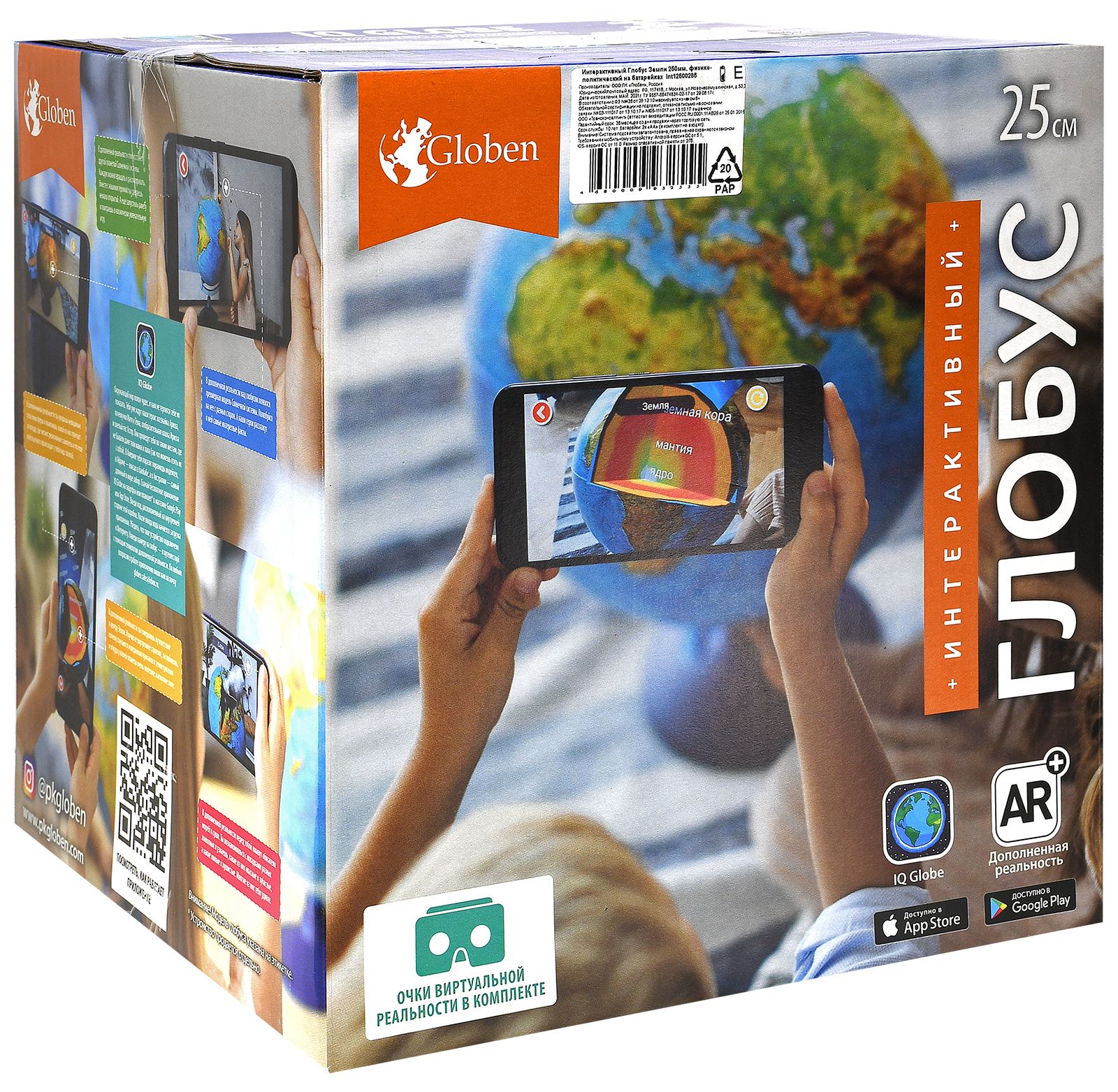 Диаметр, см: 32,00 Наличие подсветки: Да Тип: физико-политический Торговая марка: Globen Тип питания: батарейки Комплектация набора: VR- очки Мин. партия и варианты упаковок: 1 -
